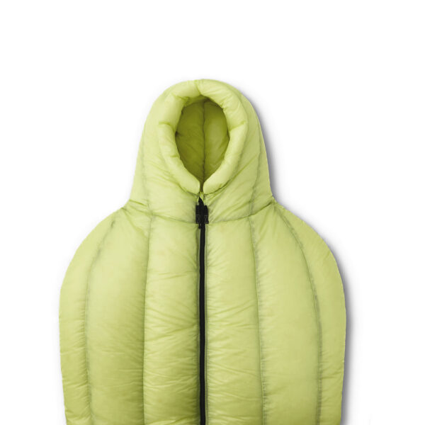 The updated sleeping bag version has a lightweight 15den fabric, an improved hood and collar fastening system, and a puffier collar that wraps the neck from all sides.