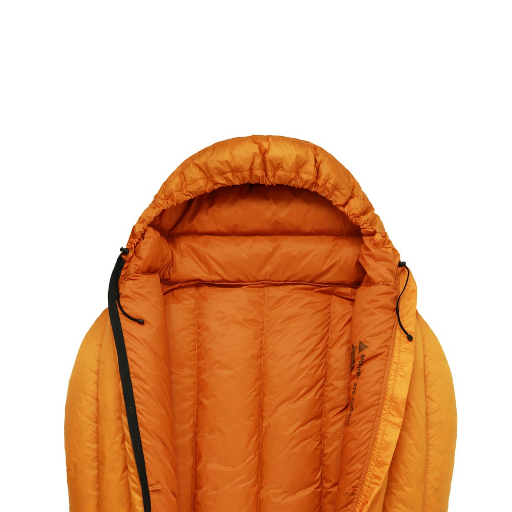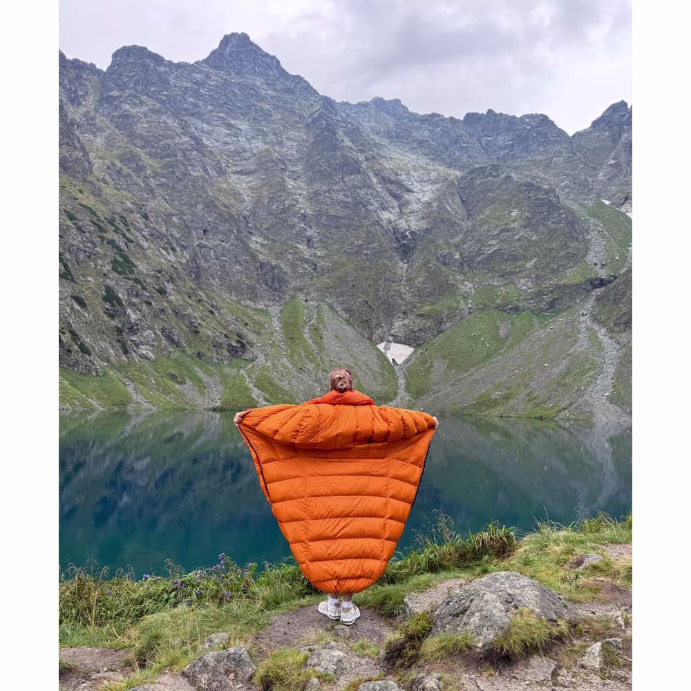 350 Summer is a down sleeping bag designed for summer travel. 350g (12.35 oz) of 800 Fill Power goose down ensures a comfortable sleep on cool Carpathian nights. In warm weather, you can unzip the sleeping bag and use it as a blanket.