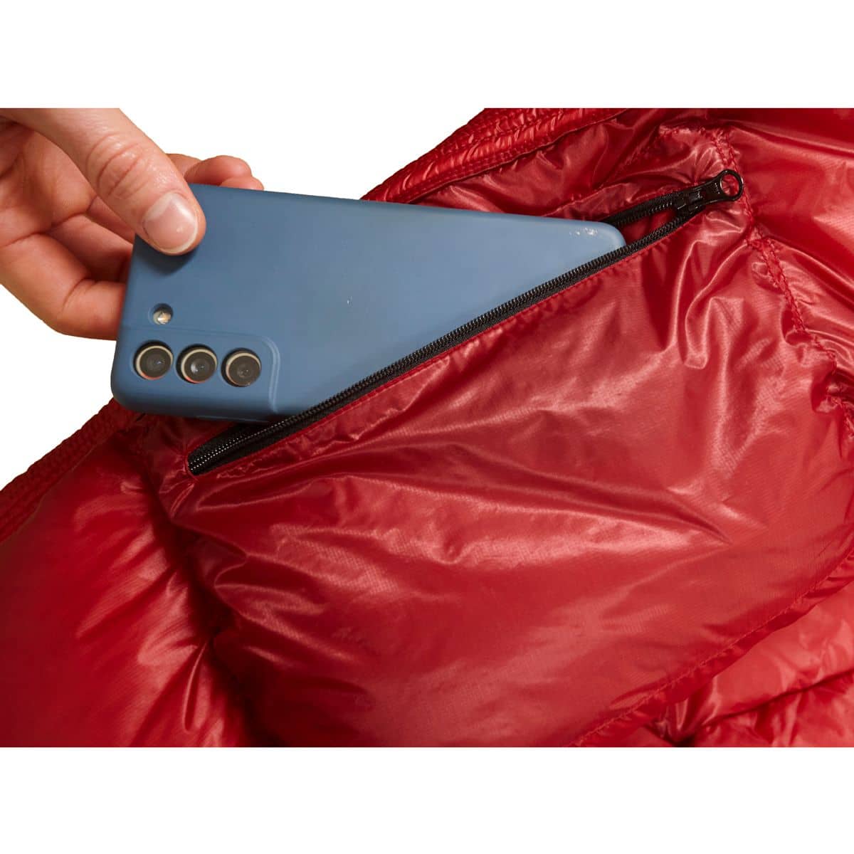 The optimal length zipper allows you to get in and out of the sleeping bag comfortably. The spacious footbox provides comfort in the foot area. An internal pocket holds a phone, power bank, or other valuables.