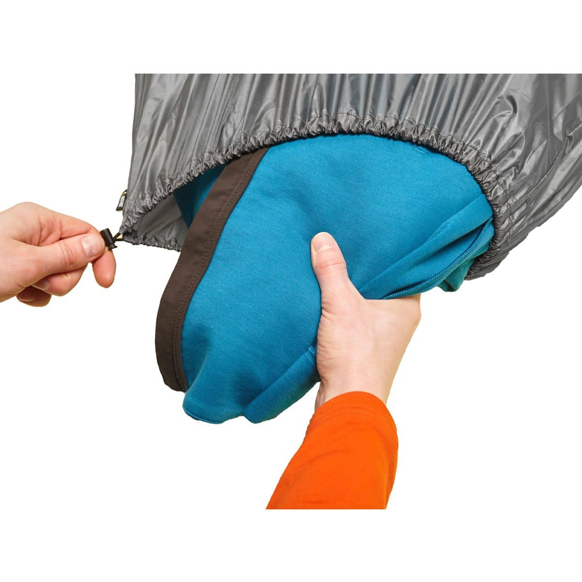 With zips on both sides and drawstrings at the top and bottom, the sleeping system can be ventilated from either side, allowing you to adjust the temperature throughout the night. It is ideal for summer backpacking and camping or for traveling in warm climates.