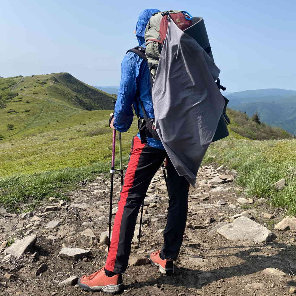 The towel has a loop and button for hanging and is packed in a handy mesh sack. The loop allows you to attach the towel to your backpack for quick drying in the sun on the move. If you have a trail through the forest, you can fold the towel into a mesh sack and attach it to your backpack. This way, it will dry and won’t catch on branches.
