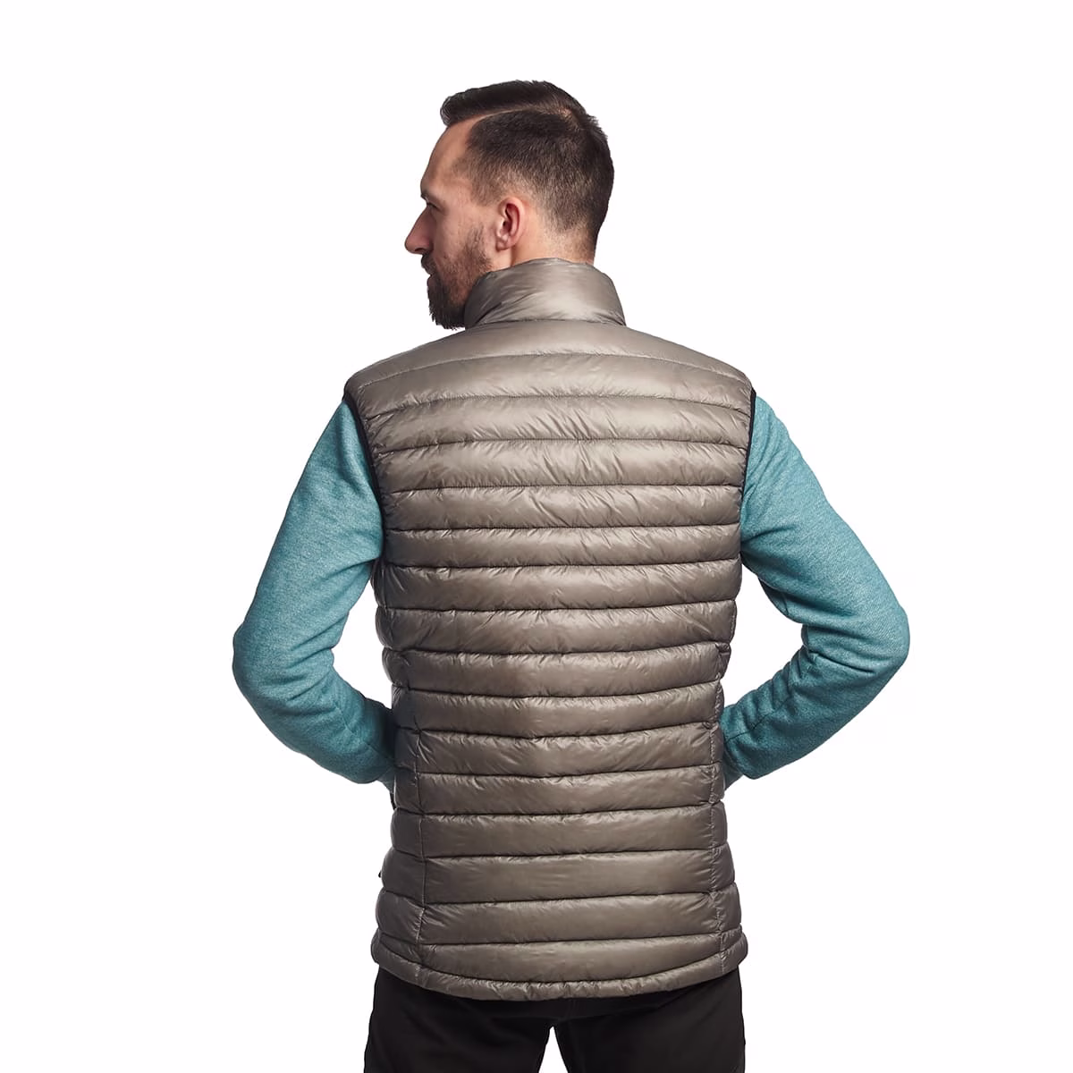 A vest insulated with premium 870+ Fill Power goose down, offering ultra-lightweight and compactness, and easy packs into its own pocket.