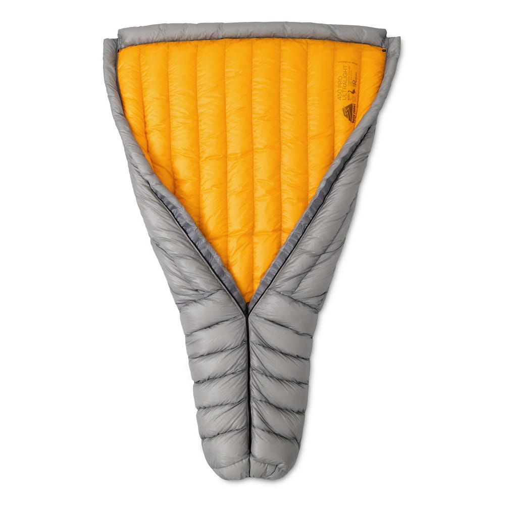 ROCK FRONT 450 Pro Ultralight is a lightweight and packable backpacking bed consisting of down quilt + sleeping pad sheet. Zippered together, setup becomes stable and comfy. Pad keeps warmth from below and down quilt insulates sides and top.