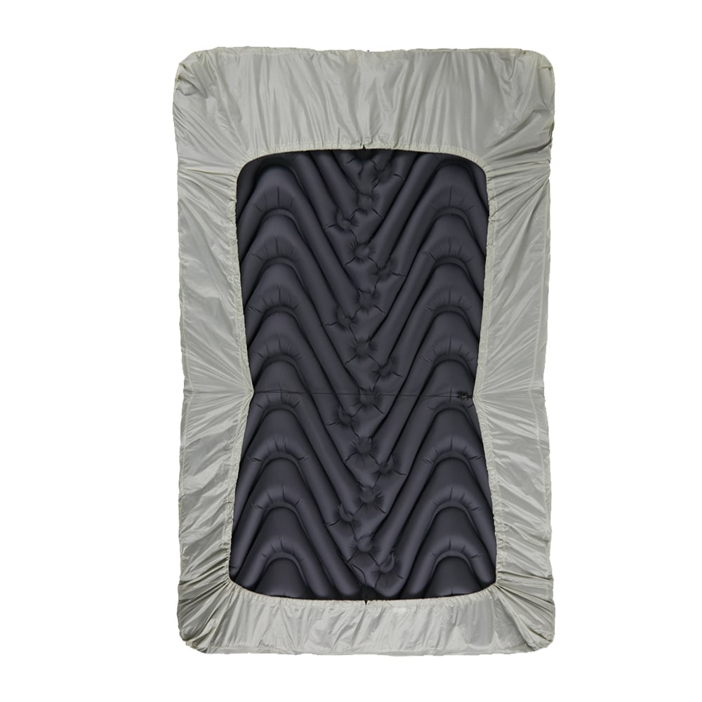 The camping sheet for inflatable double mat provides comfort during sleep, especially in hot climates. Suitable for most wide rectangular or trapezoidal mats.