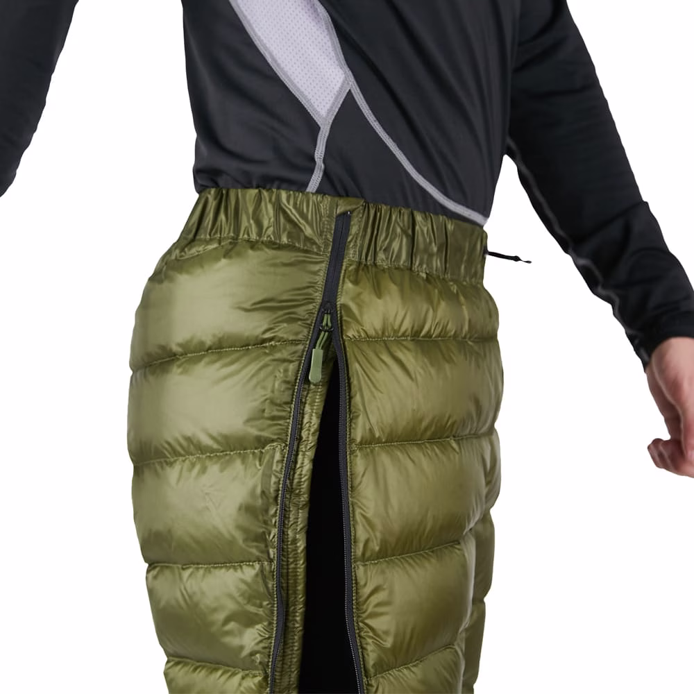 The design with zippers allows you to wear it over your main pants without taking off your shoes. Thanks to the 870+ Fill Power down, it’s very warm, lightweight and compact at the same time.