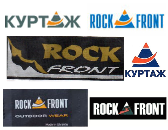 The ROCK FRONT logo is an image of a rocky mountain in the form of a green triangle with a white snow-covered peak, through which a zigzag element passes, symbolizing the path to the top. In earlier versions of the logo, instead of this, there is an arch-shaped element, as in the inscription “Courtage.”